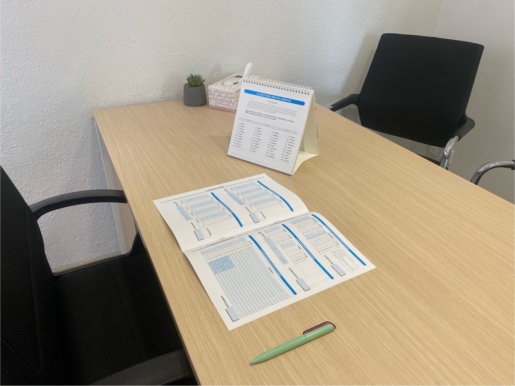 Primera visita: Aquesta primera sessió correspon a un primer contacte amb la família del menor per tal de poder fer l’ anamnesi del cas. Es recull informació rellevant del cas que ens pot ajudar a trobar les proves que més s’ adequin a cada cas.